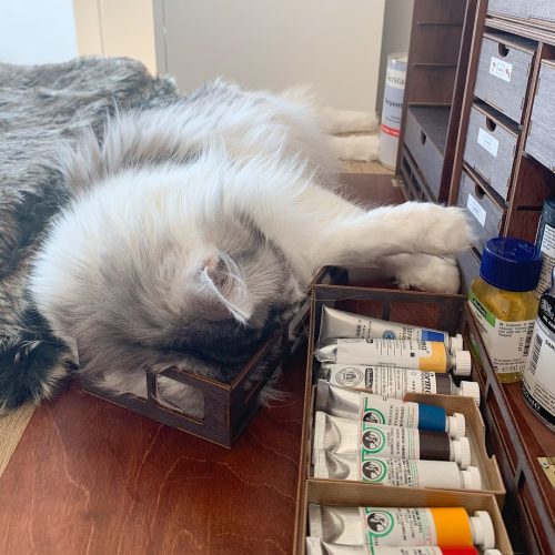 – Are your cats Maine Сoon breed? Do they like to get involved when you are painting?