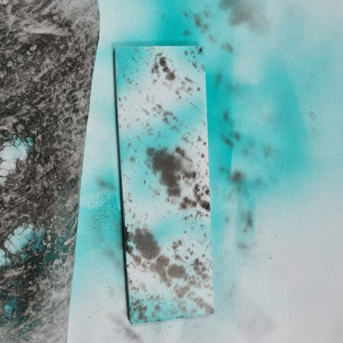- Spray black ink through it. Don’t cover your piece completely, we still want a transition.