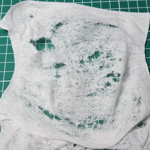 Wet wipes are crucial for creating the distinctive patterns that marble is known for. To prepare them, you’ll need to dry them out first. Once dry, take the wipe and begin pulling and stretching it on its side. This will create a random hole pattern that we’ll use for airbrushing later. Be careful not to rip the wipe completely. If you notice dust and lint shedding from the towel, moisten it slightly before use.
