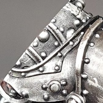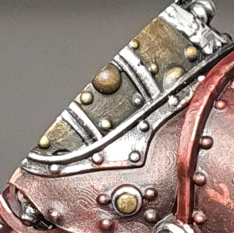 - Those chips were filled with VMA silver. A black edge was left to help the chips pop against the armor.