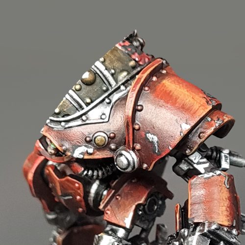 To streamline the painting process of the Castellax, we have divided it into three manageable segments. We will start with the metallic colors since they take up a huge chunk of the model and are the messiest to paint, followed by the armor, and finish it off with battle damage for a final touch of realism.
