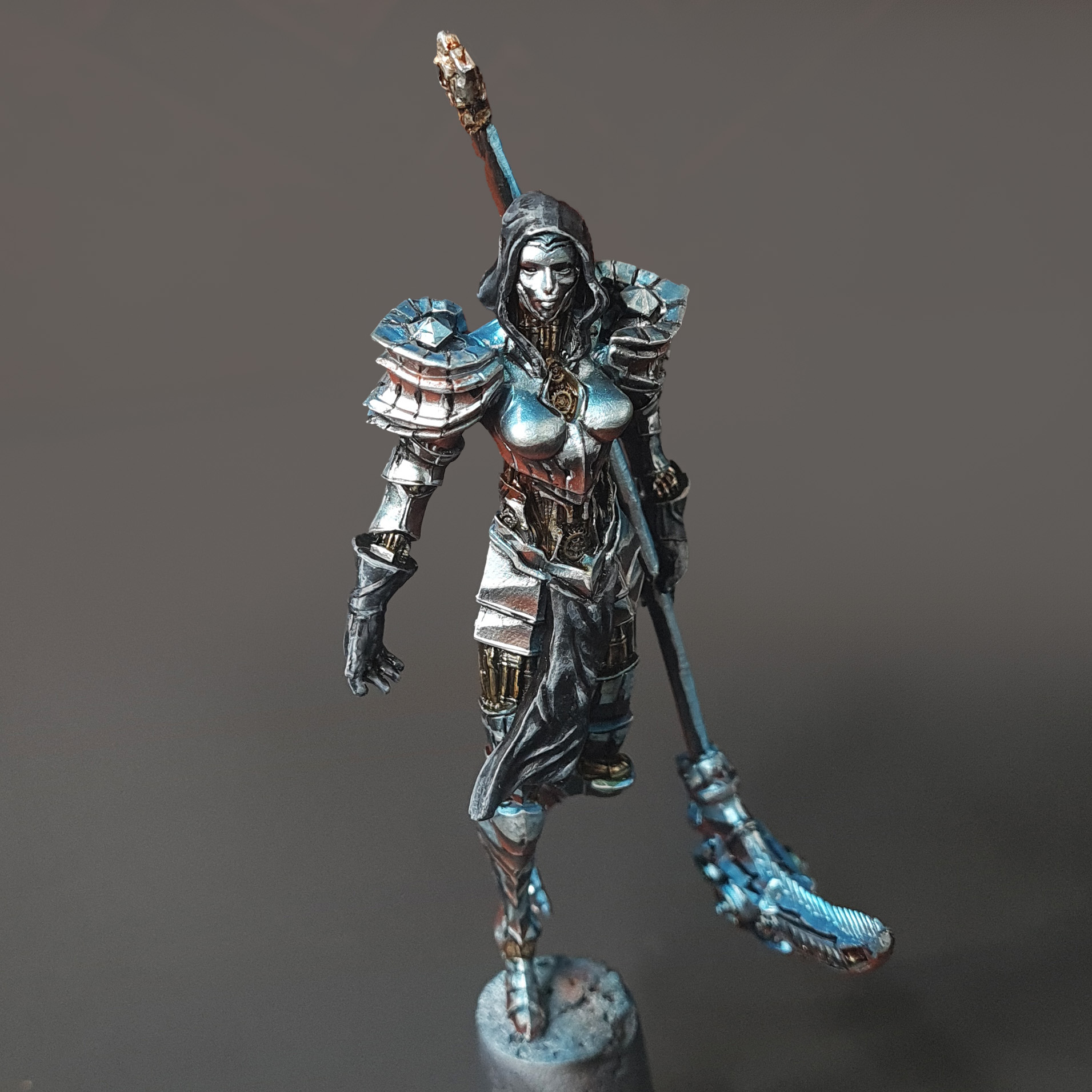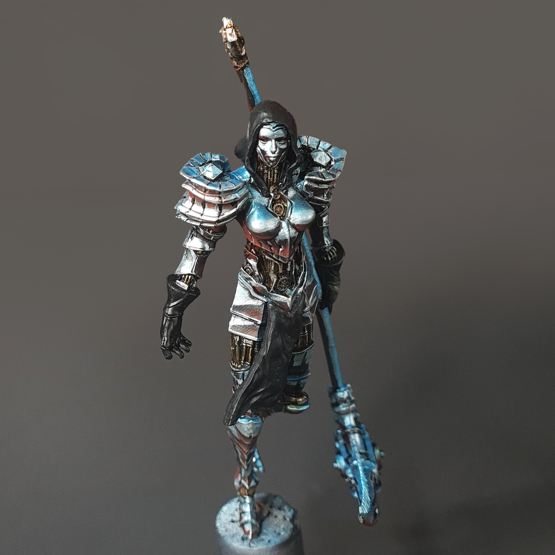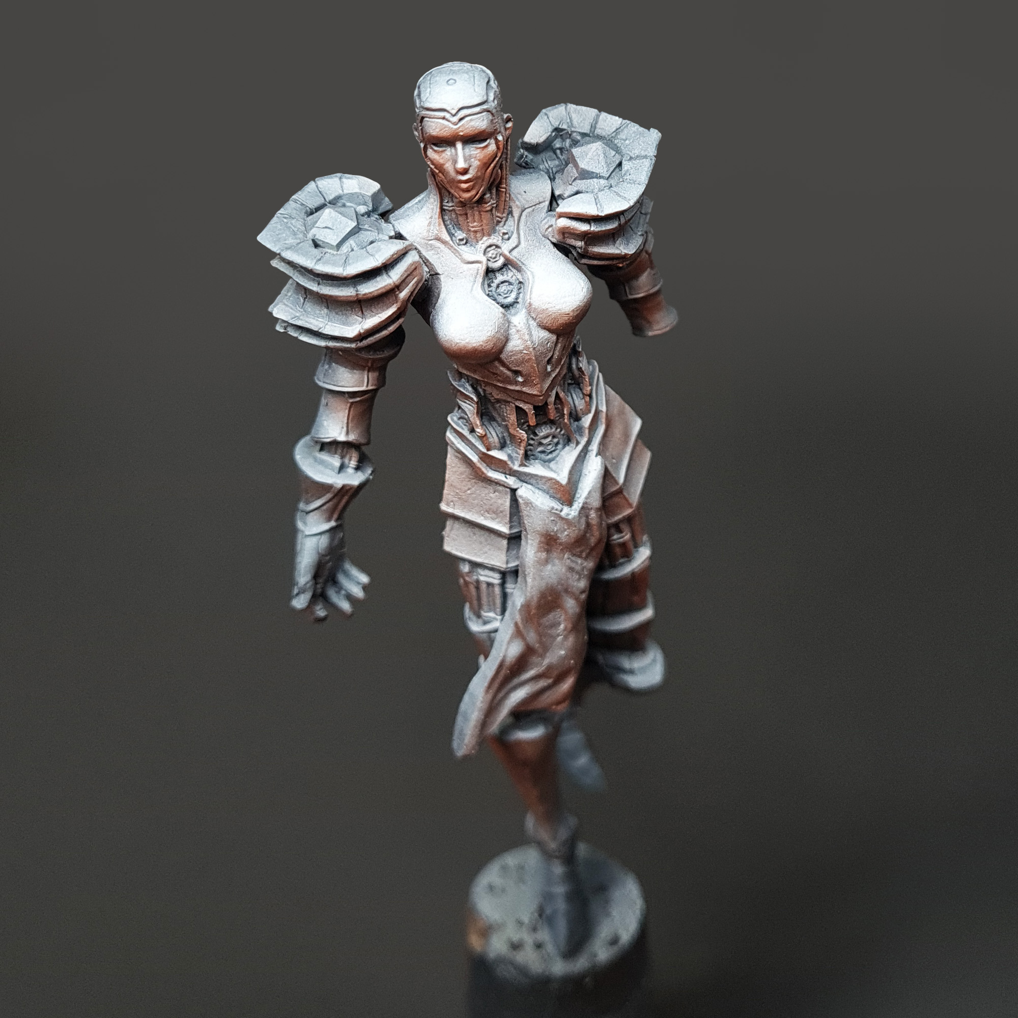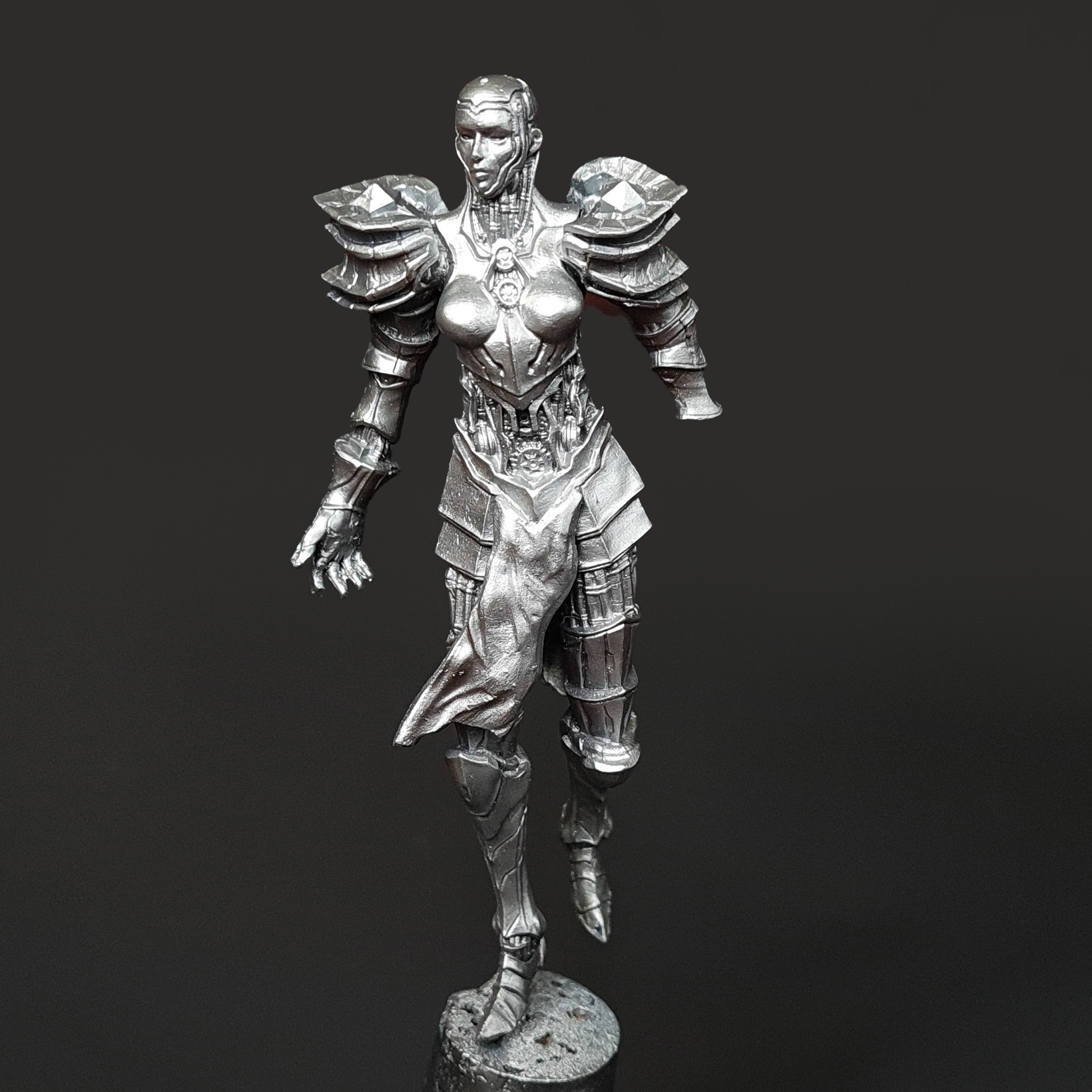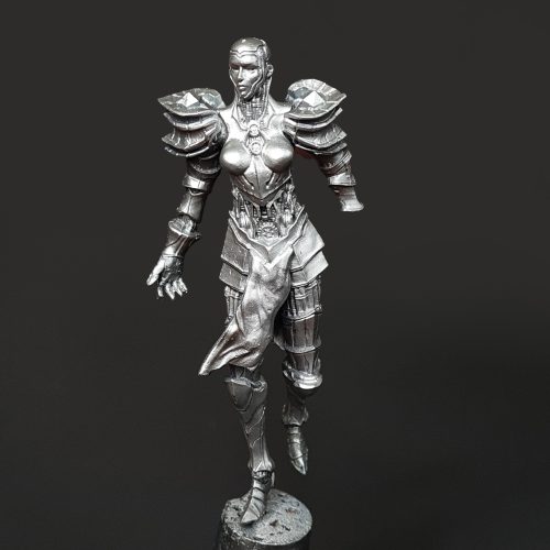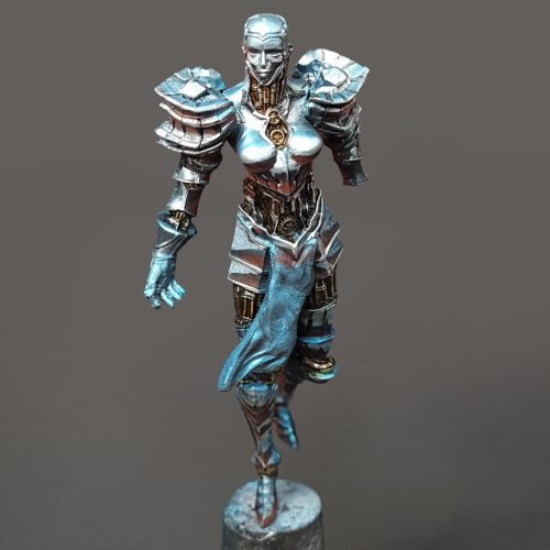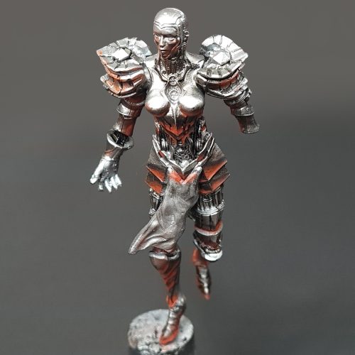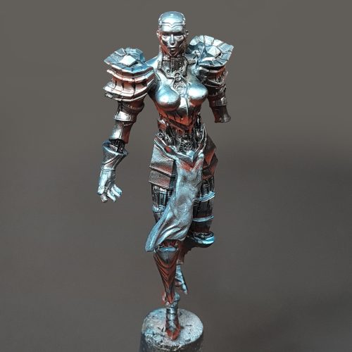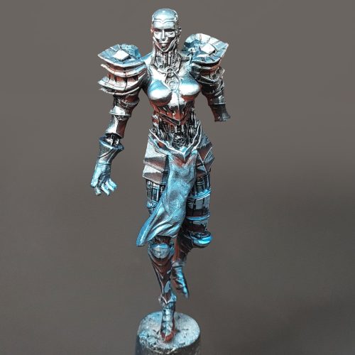 Hello, and welcome to the fifth installment of our “creating a diorama” series. In previous entries, we went over the creation of our diorama base and painted models that helped us set the scene. Now it’s time to give the spotlight to the central piece of our diorama- The Chrome Maiden.