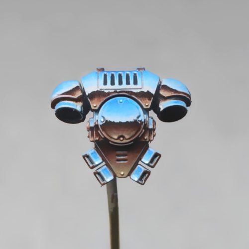 Figuring out how to paint the chrome effect was the first challenge. NMM is a great technique to use for it. But it only looks good from a certain angle and takes a lot of time and practice to pull off successfully. Not to mention the time constraints to finish this project. Metallics pose a different challenge since chrome paint doesn’t look like true chrome at this scale and won’t capture all the reflections correctly. Then again, why stick to just one technique?