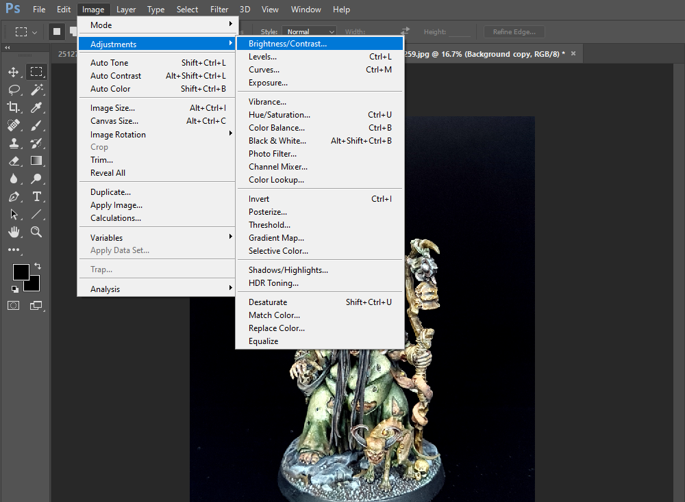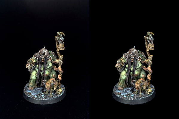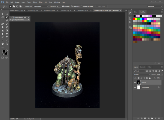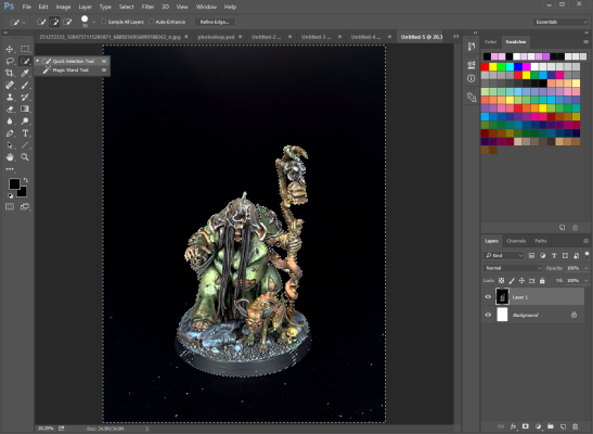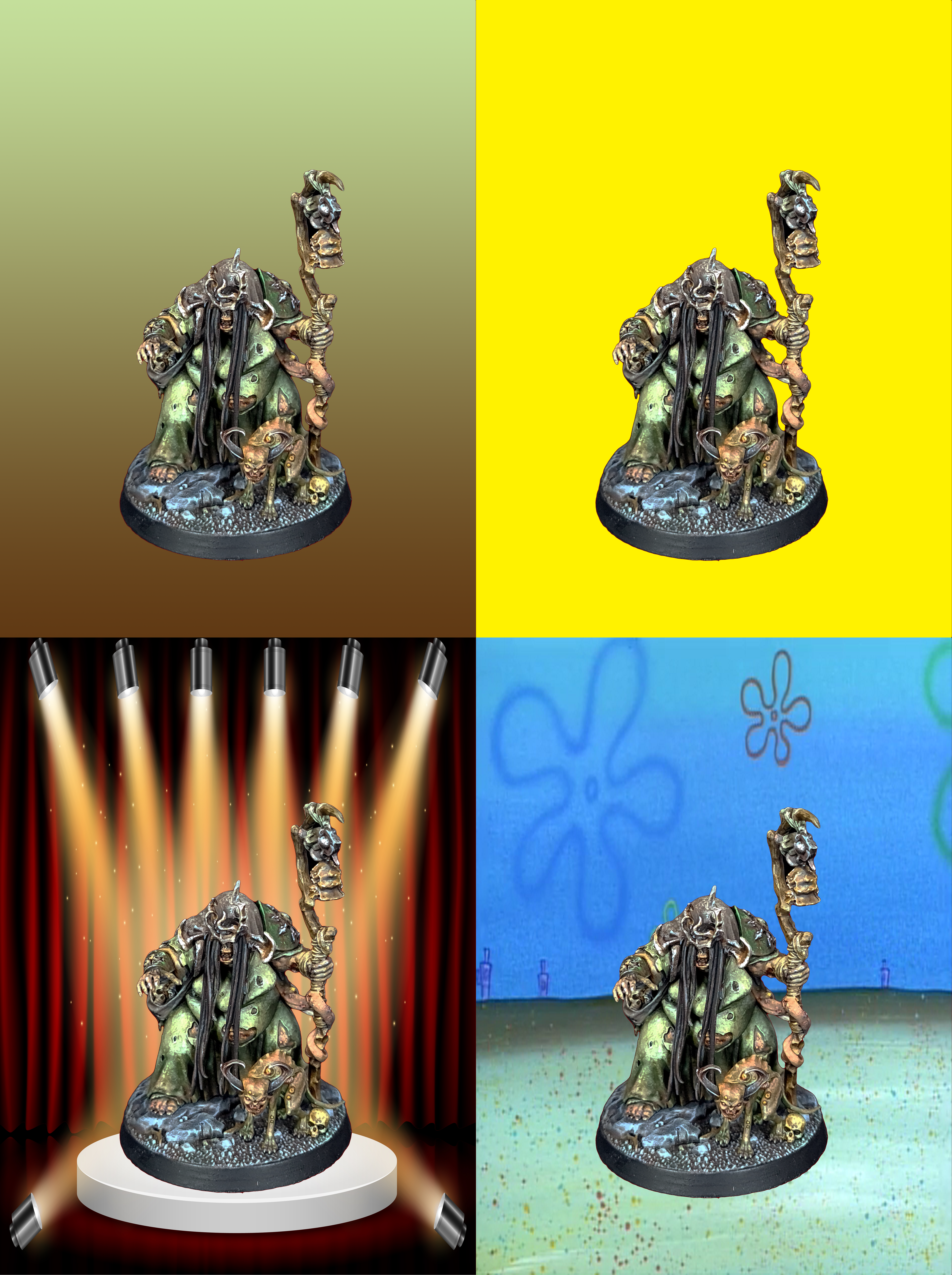 5) As a bonus alternative you can replace the background during this step. That is the reason why we focused most of our efforts on area selection. While not necessary, this step can add a lot to your model. For example, you can add a battlefield background to a space marine. Or add a thematic forest background to your forest elf. Or in our case, take a pestilent witch to bikini bottom.