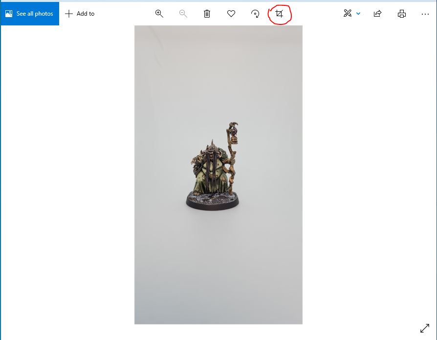 Depending on how you framed your subject photos may need to be cropped. I usually do it either to remove negative space or to crop something out of the frame. Not to mention that it helps greatly with readability at a small scale. For example preview images on social media or mobile devices. Even if your image gets compressed, cropping it beforehand can help negate the loss of resolution. This step can be done in most photo viewing software. We used windows image viewer for this demonstration.