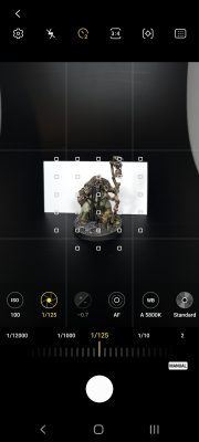 We now know how the camera fairs in default mode. Let’s try to take a better picture in PRO mode. The first thing I saw in pro mode is that the camera is overexposed. I reduced exposure by adjusting the shutter speed. Just like in the default settings we used a piece of white paper to try and match what we see in real life with what we see on the screen. ISO was left at 125. After removing the paper image brightness settings were unaffected.